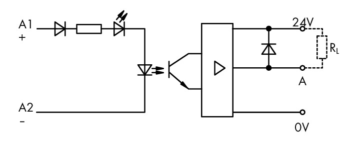 Optocoupler module; Nominal input voltage: 24 VDC; Output voltage range: 10 … 30 VDC; Limiting continuous current: 3 A; 3-wire connection/low-side switching; Red status indicator; Module width: 6 mm; gray