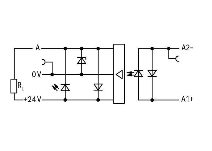 Optocoupler module; Nominal input voltage: 24 VDC; Output voltage range: 15 … 30 VDC; Limiting continuous current: 1 A; 3-wire connection/low-side switching; Frequency 15 kHz; Red status indicator; Module width: 6 mm; gray