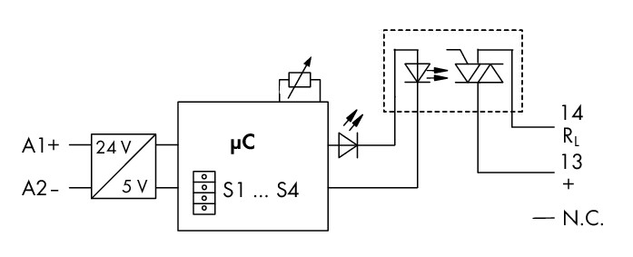 Solid-state timer relay module Nominal input voltage: 24 VDC Output voltage range: 24 … 230 VAC